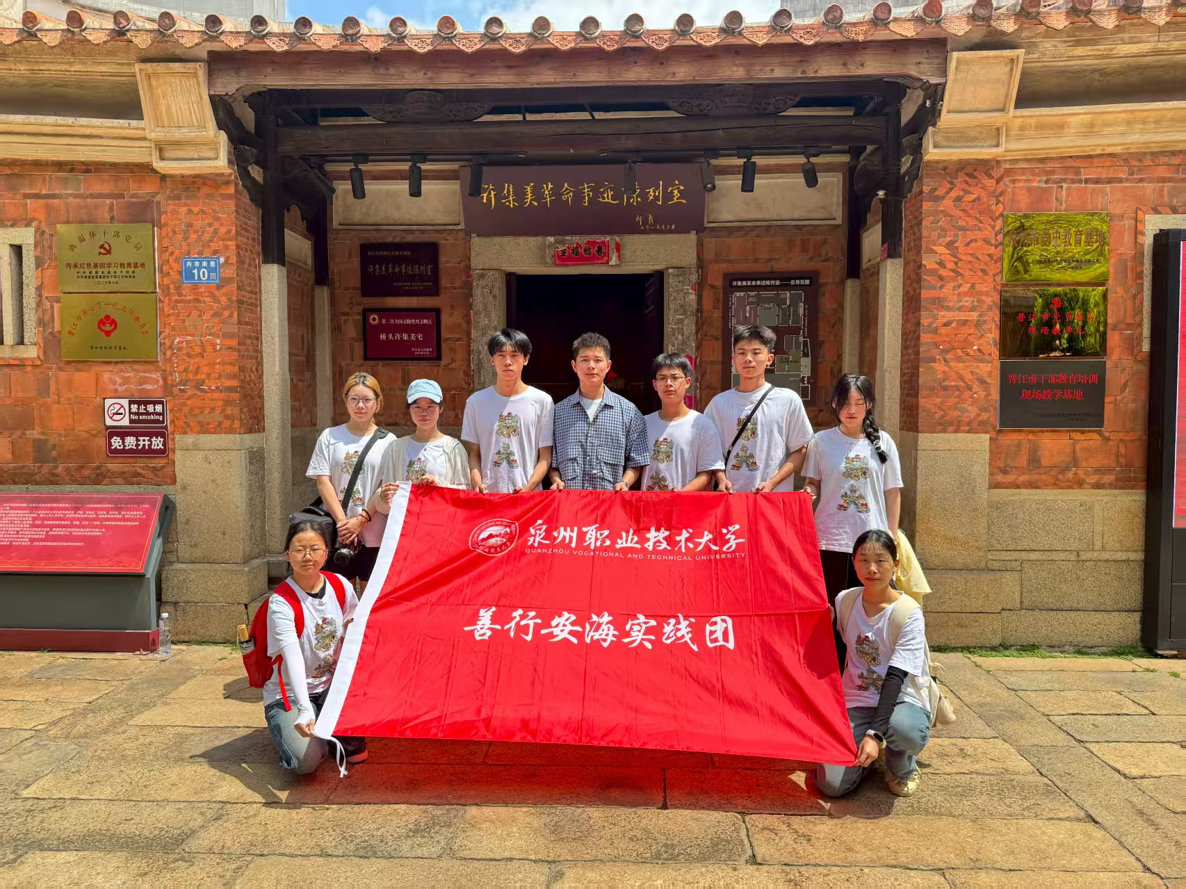 当夏日蝉鸣萦绕古厝飞檐,当青春活力邂逅千年文脉。7月8日至 8 月2日,泉州职业技术大学一善书院“善行安海”实践团走进晋江安海古镇,以“青年文旅”为纽带,深入探寻当地美食、非遗、产业与红色文化,在实践中解码安海“守正创新”的精神内核,为古镇文化传承注入青春动能。此次实践并非简单的文旅探索,而是实践团对安海精神的深度挖掘。从舌尖古早味到指尖非遗艺,从传统老作坊到现代产业园,从革命故居到青年实践现场,实...