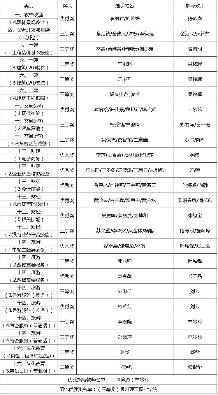 “以赛促学 以赛促改”我校2017年度福建省职业院校技能大赛获奖名单