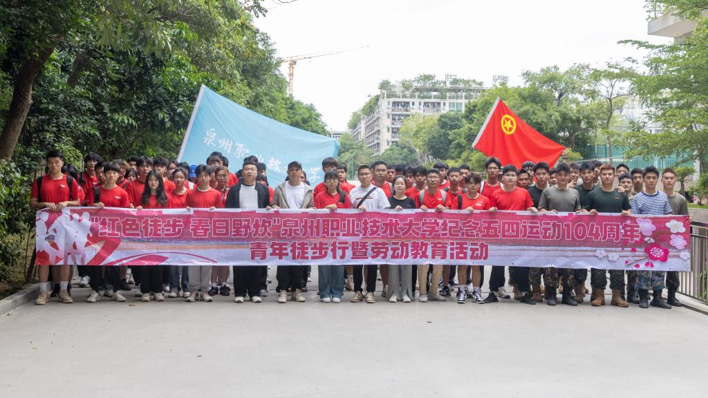 5月4日,泉州职业技术大学举行“红色徒步 春日野炊”纪念五四运动104周年青年徒步行暨劳动教育活动,104名师生共同徒步20公里,打卡红色文化,重温红色足迹,传承红色基因,磨炼坚忍意志,感受劳动教育独特的育人价值。当天上午8时,104名师生参加完升旗仪式后便背着锅碗瓢盆等炊具,迈着矫健的步伐,带着青春的活力从学校出发,徒步3.5公里到达内坑镇五峰公园,观瞻中共泉州中心县委历史纪念馆陈列布展的革命文物和烈士遗物。...