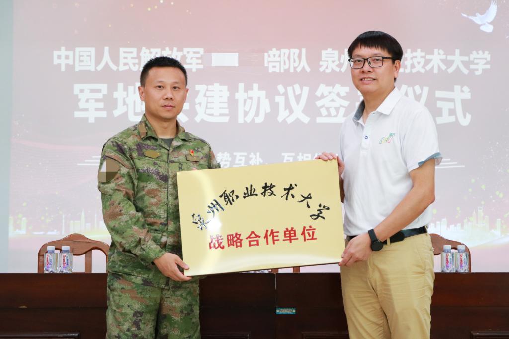 6月30日,我校与晋江市退役军人事务局、中国人民解放军某部军地三方共建协议签署仪式在部队举行。仪式上,副校长林文艺代表学校与部队签订共建协议,双方将重点围绕党建、红色教育、技术交流、技能培训和环境改造等方面开展共建活动