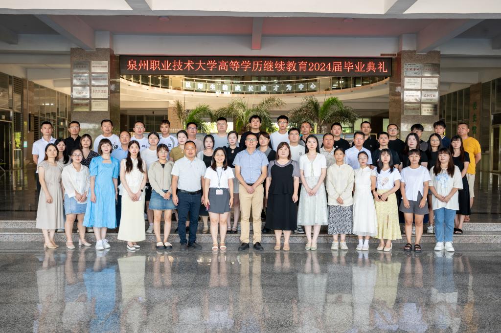 7月21日,泉州职业技术大学高等学历继续教育2024届毕业典礼隆重举行。210名毕业生从这里扬帆起航,迈向人生新征程。副校长林文艺、终身教育学院副院长吴燕红、高等学历继续教育教务中心全体教职工及2024届毕业生代表参加典礼。仪式由终身教育学院学历提升中心负责人陈霞主持。林文艺代表学校向全体毕业生表示热烈的祝贺。他在致辞中强调,作为成人学生,在职学习是艰辛的,同学们克服了工学矛盾,不仅收获了丰富的专业知识和实...
