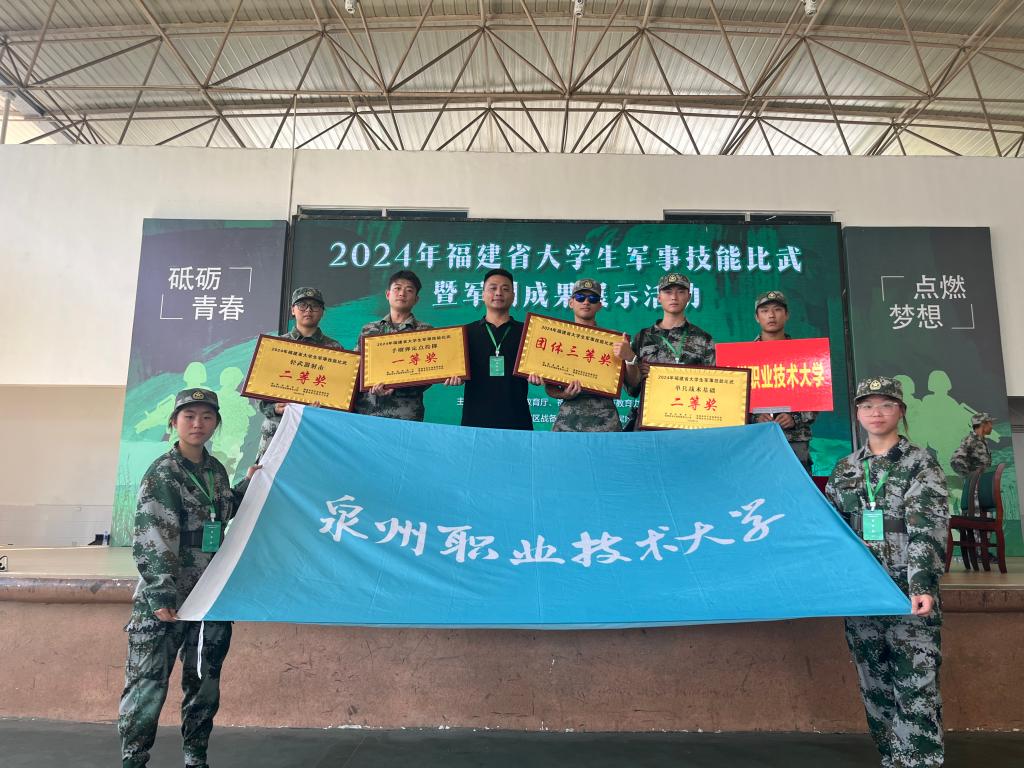 7月12日至14日第七届福建省大学生军事技能比武暨军训成果展示活动在三明市综合实践学校举行来自全省高校的67支队伍600余名师生齐聚比拼泉州职业技术大学参赛代表队参赛队员陈伟洁、许皓程、蔡赐洪、梁啸陈婧婷、黄梅、李欣娜、陈雨婷指导老师陈东东▲ 我校参赛选手在赛场上的精彩表现在6大比拼项目中发挥出色最终斩获手榴弹定点投掷项目一等奖战术基础动作项目二等奖轻武器射击项目二等奖团体三等奖近年来学校围绕落实立德树人...