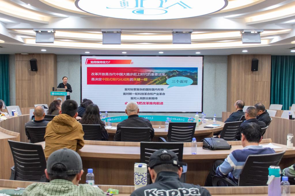 3月14日下午,我校开展党的二十届三中全会和全国两会精神学习会,邀请教育部学位与研究生教育发展中心评审专家、福建省高校思政课教指委副主任委员、华侨大学马克思主义学院院长曹文宏教授作题为《改革的实践续篇 现代化的时代新篇》专题讲座。曹教授向大家讲解党的二十届三中全会《决定》和全国两会的基本精神。讲座从“为什么党的二十届三中全会《决定》和全国两会是改革的实践续篇”“现代化的时代新篇”“如何以全面深化改...