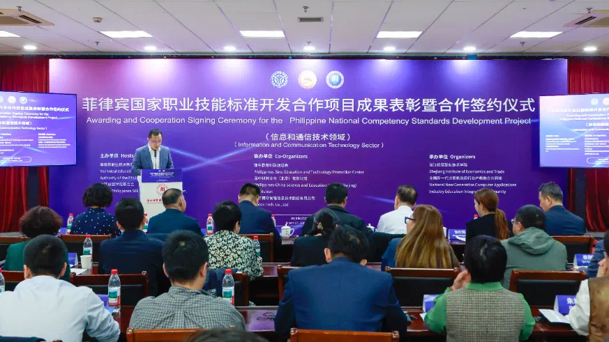3月27日,由菲律宾职业技术教育与技能发展署(TESDA)和中菲丝路学院基金会主办,浙江经贸职业技术学院承办的“菲律宾国家职业技能标准开发合作项目成果表彰暨合作签约仪式(信息和通信技术领域)”在杭州举行。我校副校长郭霏霏教授,联合创新产业学院副院长谢云翔教授、党总支书记林江鸿副教授及华为高级培训讲师郭晓宇深度参与“人工智能训练师”标准开发工作。经过起草、论证、修订和多轮研讨、审核,该标准顺利通过菲律宾职业...