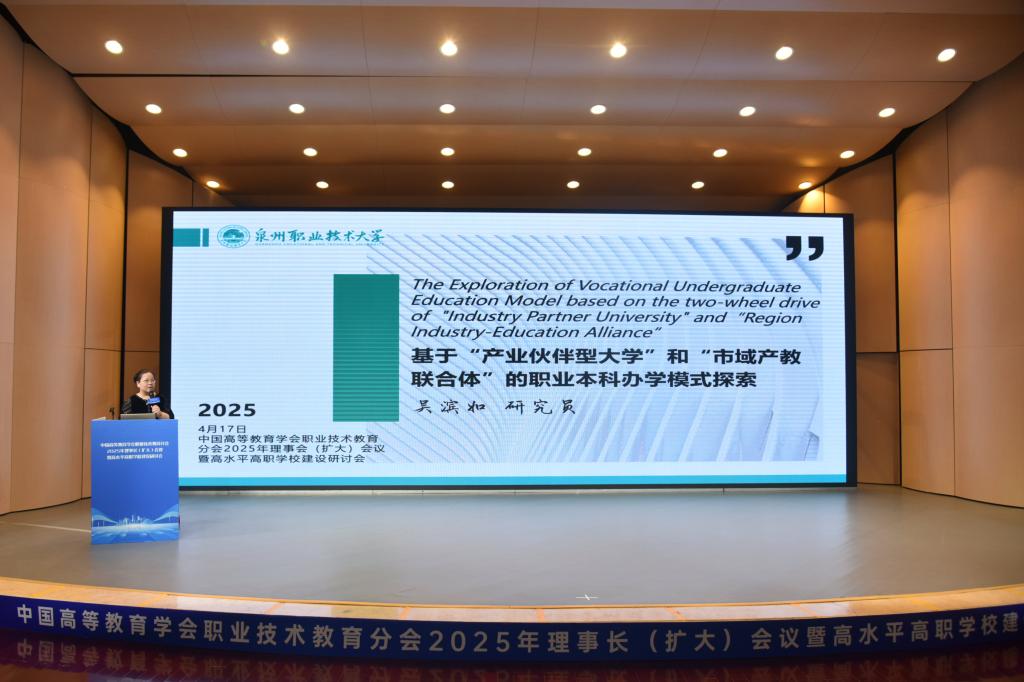 4月16日至18日,2025年中国高等教育学会职业技术教育分会理事长(扩大)会议在河南省郑州市召开,同期举办了高水平高职学校建设研讨会。中国高等教育学会副会长葛道凯出席会议并作主旨报告,中国高等教育学会职业技术教育分会理事长周建松、全国高职高专校长联席会议荣誉主席董刚、《中国高教研究》主编王小梅、宁波职业技术学院党委书记张慧波、河南职业技术学院校党委副书记、校长夏新颜等领导和知名职教专家作交流发言。泉州...