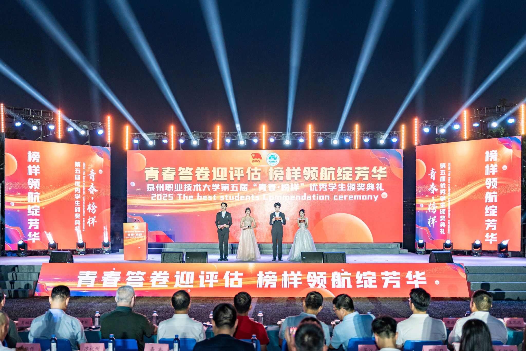 6月11日晚,泉州职业技术大学以“青春答卷迎评估,榜样领航绽芳华”为主题,隆重举办第五届“青春・榜样”优秀学生颁奖典礼。泉州团市委副书记何培旭,泉州市高教发展中心主任黄永东,省教育厅挂职大田县建设镇干部陈彪,省教育厅选派大田县济阳乡驻村干部陈启兴,鲤城区社科联主席吴湘霖,晋江市民政局副局长施建生,晋江团市委副书记王思思,大田县建设镇党委委员、人民武装部部长陈首道,内坑镇司法所所长苏雅雅,全国青联常...