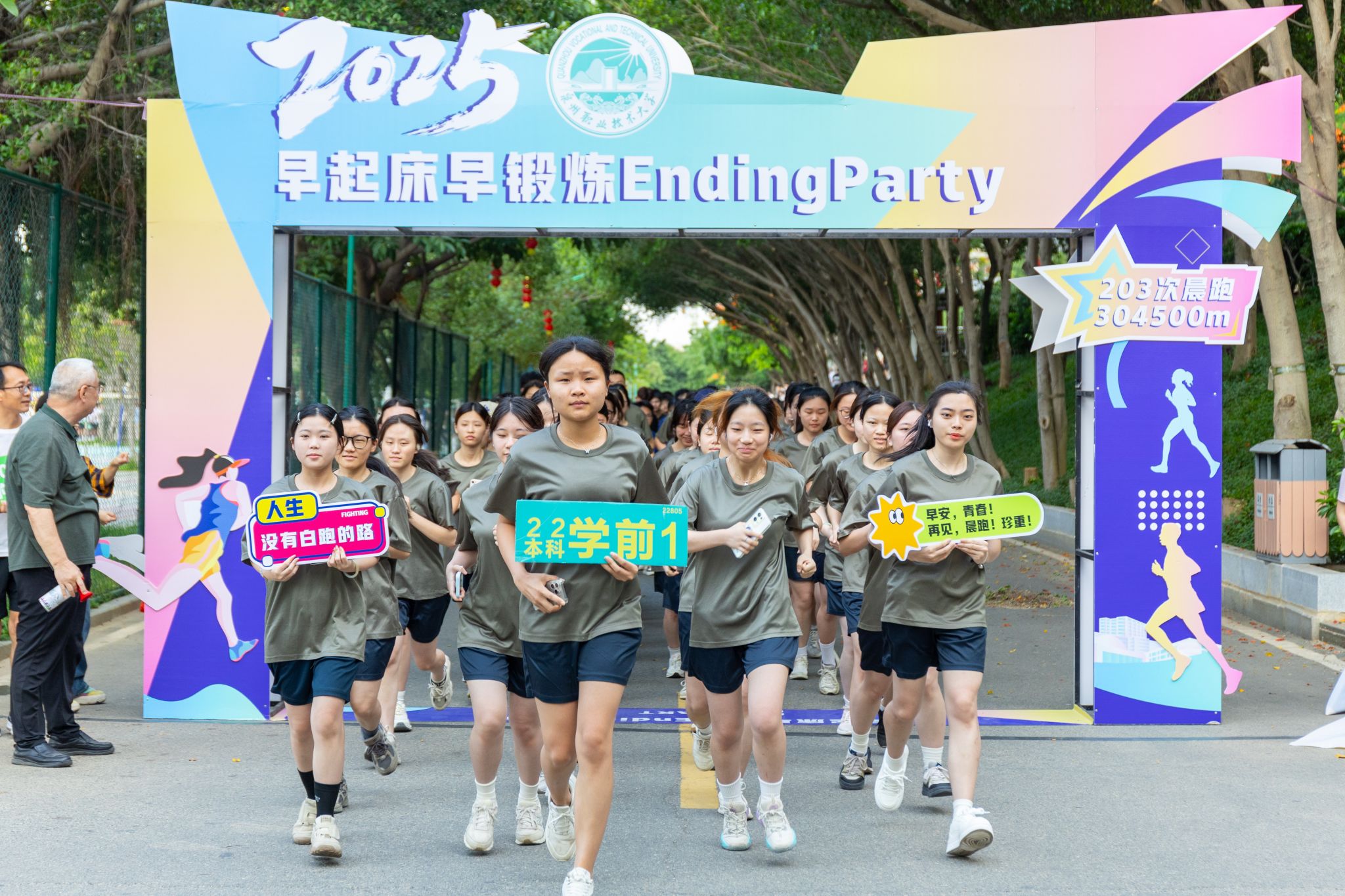 凌晨6时10分朝阳透过树叶洒向泉大彩虹跑道2396名2026届学子精神抖擞蓄势待发“嘭——”校务顾问来永宝教授扣动扳机发令枪的巨响唤醒静谧的校园体重管理年健康有我行动起来,泉大er一起拥抱健康好生活加油,同学们加油,跑起来永不止步抓住早晨的人才能抓住人生39年早起床早锻炼39年风雨无阻39年永不止步今天,泉大er沿着1.5公里早锻炼路线,开启在校期间的最后一次早锻炼。他们元气满满,从86公路上起跑,绕过泉大湖畔,穿过彩...