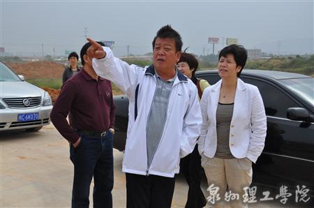 吴金营董事长向晋江市副市长(右一)介绍新校区建设情况 董事长陪同蔡市长做现场视察 11月3日上午,晋江市副市长蔡萌芽,在助理温靖玄,晋江市内坑镇和泉州市高教办等一行领导的陪同下,莅临我校新校区视察...