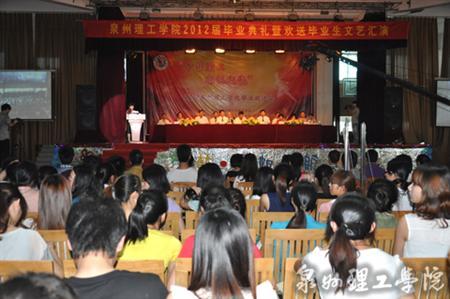 6月10日下午,泉州理工学院思恩楼三楼大礼堂人声鼎沸、热闹非凡。一千七百多名师生相聚在这里,隆重举行泉州理工学院2012届毕业生毕业典礼暨毕业欢送会。 出席毕业典礼的有泉州理工学院党委书记吴金营、校长苏...