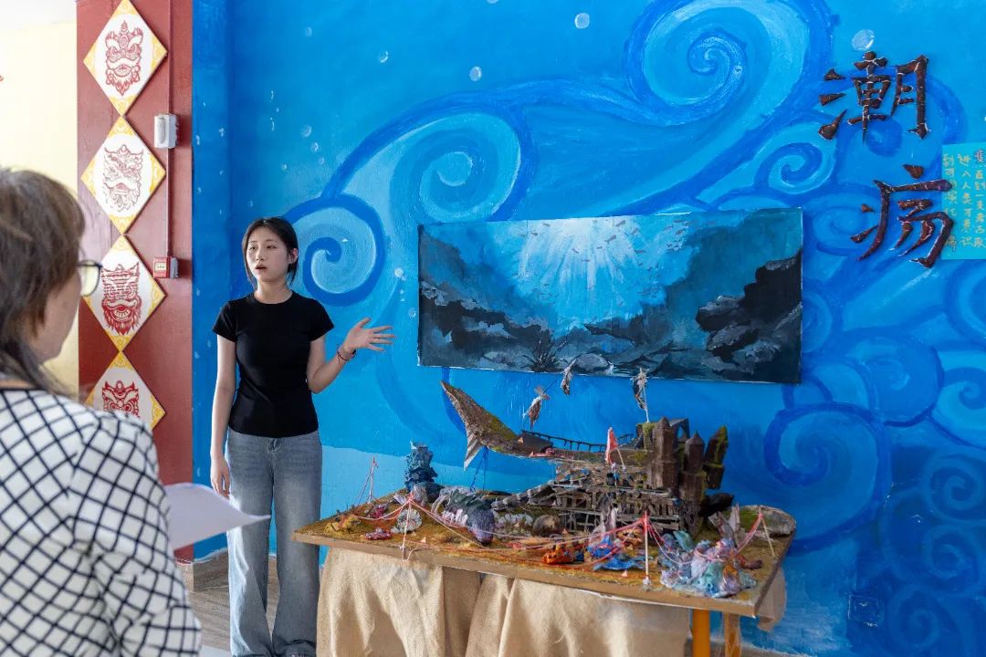 各比赛团队成员代表围绕 “教育理念-设计思路-展览呈现” 展开解说,评委老师现场打分。