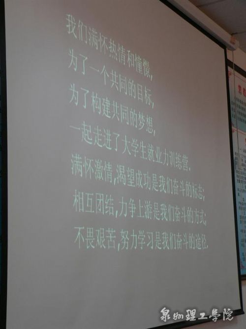 此次培训班课程内容包括团队拓展训练、有效的沟通技巧、时间管理的技巧、商务形象与礼仪、我营销—简历和面试核心技术、企业内的人际关系、角色认知、职业转换、职业选择等。通过四天两夜专业、系统、全面的就业培训,在最短的时间内,帮助部分大学生掌握职场必备的知识、技能和职业观念,解决同学们在就业过程中可能遇到的各种问题,从而帮助同学们打造一流的就业力。