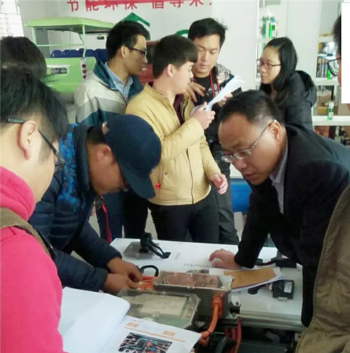 邸玉峰院长首先为我们做了电动车高压作业案例规范、电池及管理系统结构组成理论知识的讲解、以北汽/比亚迪电池管理系统检修、高电压系统结构组成、电机及控制系统结构组成、高压系统直流/交流转换控等几大模块为实际操作案例,理识一体,使参加培训的教师能够在理论基础上得到提升,又能提高动手操作能力。参加培训的教师们获益颇丰,此次培训,提升了各院校骨干的专业水平,为新能源汽车专业建设奠定了良好的基础。