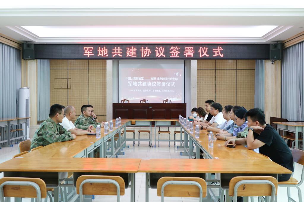 6月30日,我校与晋江市退役军人事务局、中国人民解放军某部军地三方共建协议签署仪式在部队举行。仪式上,副校长林文艺代表学校与部队签订共建协议,双方将重点围绕党建、红色教育、技术交流、技能培训和环境改造等方面开展共建活动。