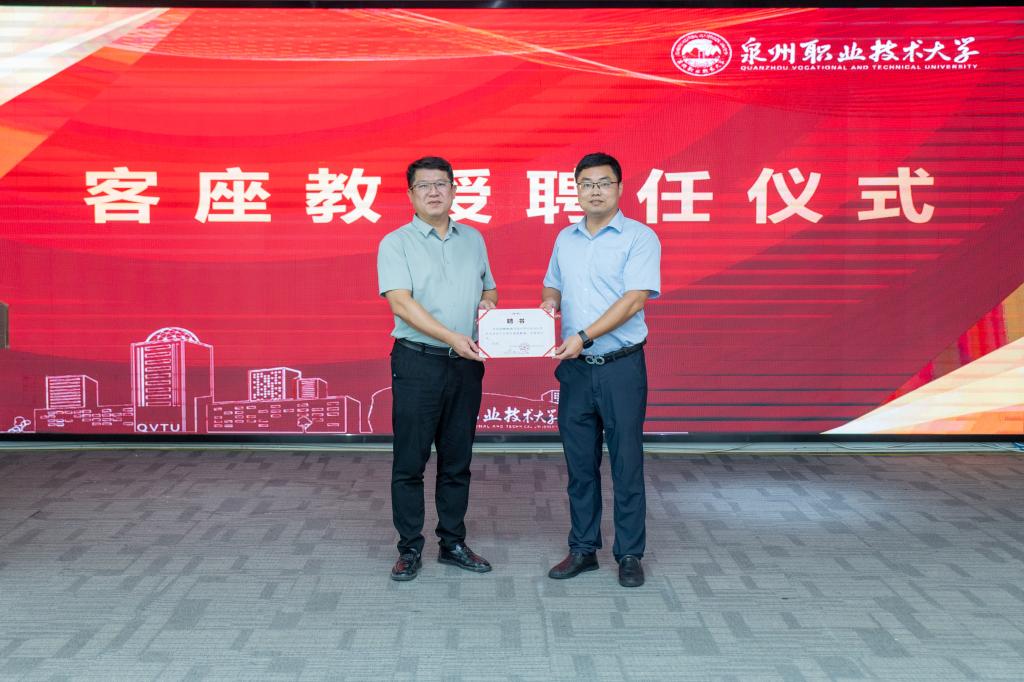 ▶ 在讲座开始前,我校副校长、联合创新产业学院院长郭霏霏向高钦泉博士颁发客座教授聘书