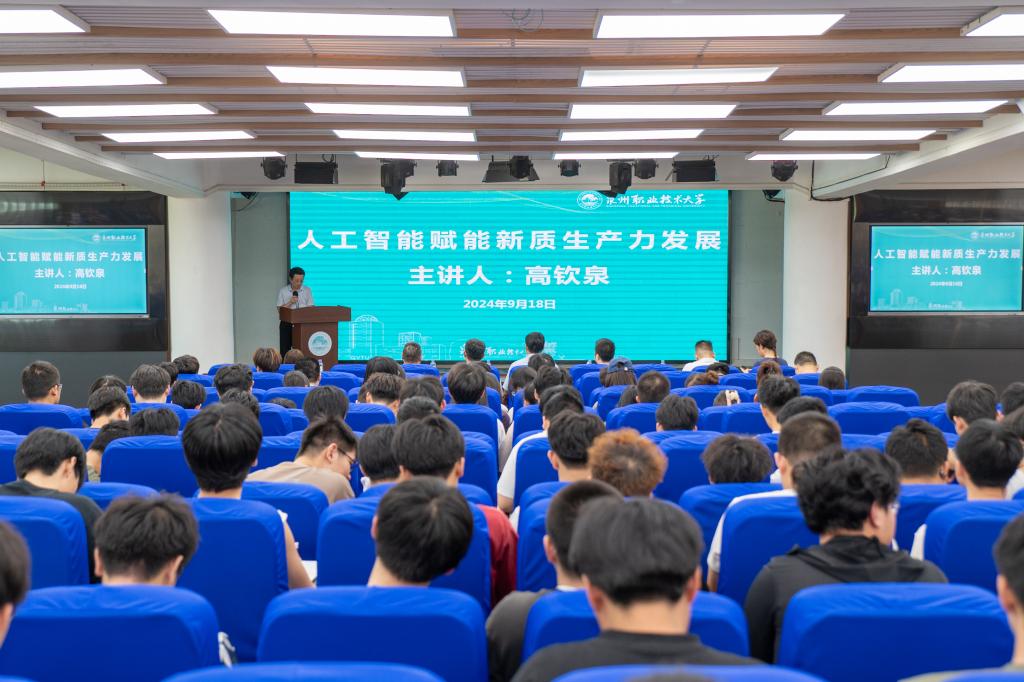 在大数据、云计算等核心技术的推动下,人工智能(AI)正经历着前所未有的发展浪潮,成为引领新一轮科技和产业变革的关键力量。为促进知识共享与信息交流,激发师生们的创新思维,9月18日,我校邀请福建帝视科技集团董事长高钦泉博士,为师生们带来一场主题为“人工智能赋能新质生产力发展”的讲座。