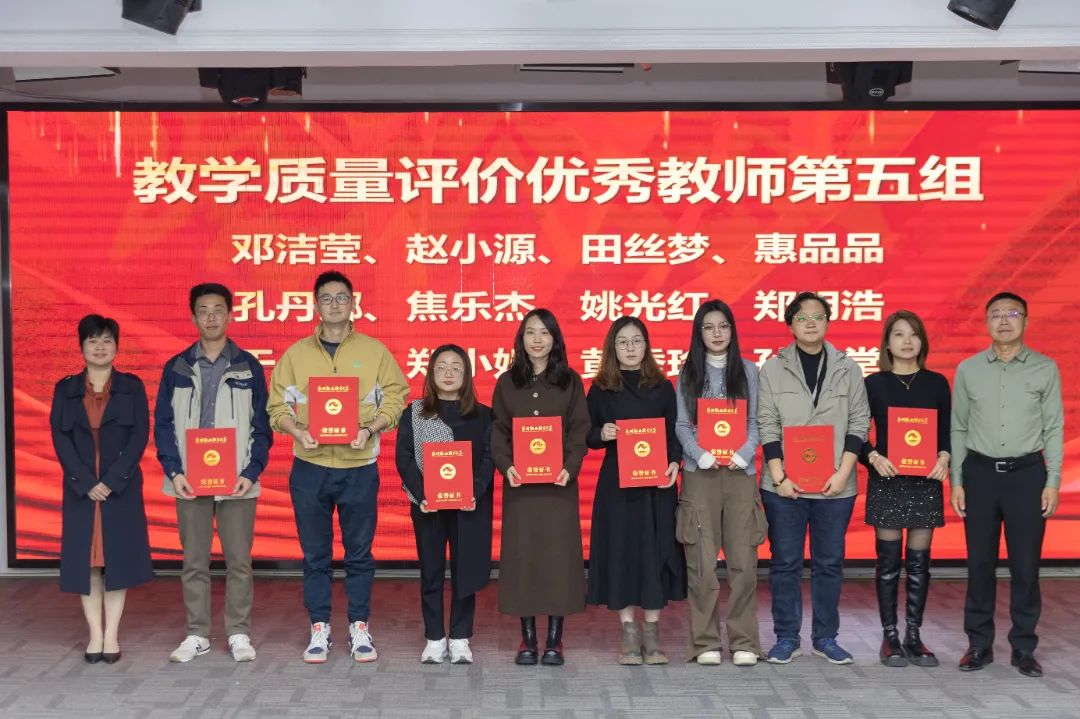 ▲ 校长助理、教务处处长苏康敏,校长助理、人事处处长王巨斌共同为在2023-2024学年第一学期教学质量评价获得优秀的教师颁奖