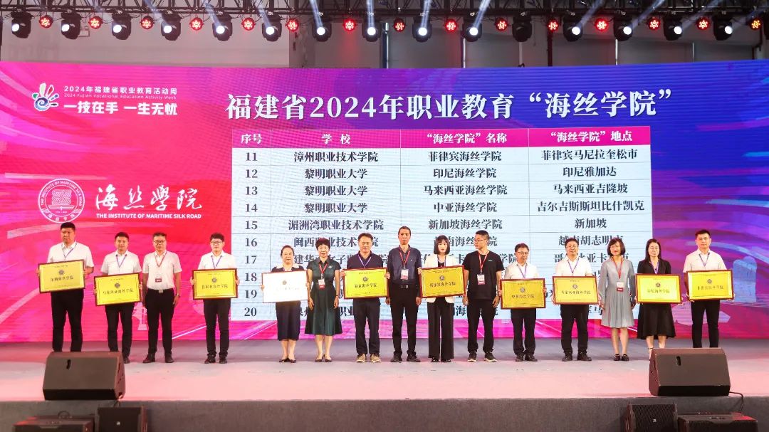 活动上,公布了福建省第一批20个“海丝学院”并进行授牌,为入选首批28个国家级市域产教联合体的晋江市域产教联合体及6个省级市域产教联合体授牌,并表彰在全国职业院校技能大赛中获得一等奖的教师。