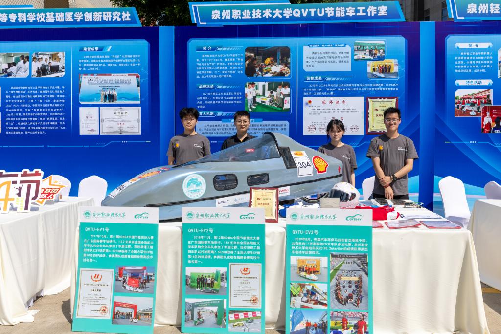 在五四运动106周年暨中国共青团成立103周年之际,4月29日,泉州职业技术大学校团委携QVTU节能车工作室(QVTU-EV车队)精彩亮相泉州市举办的纪念活动,以绿色科技力量展现新时代职教学子的创新担当,其创新研发的轻量化车身、高效能动力系统及智能能量管理技术,受到泉州市委副书记卢秀萍等领导的关心指导,彰显了我校“共青团引领+专业实践”育人体系的显著成效。