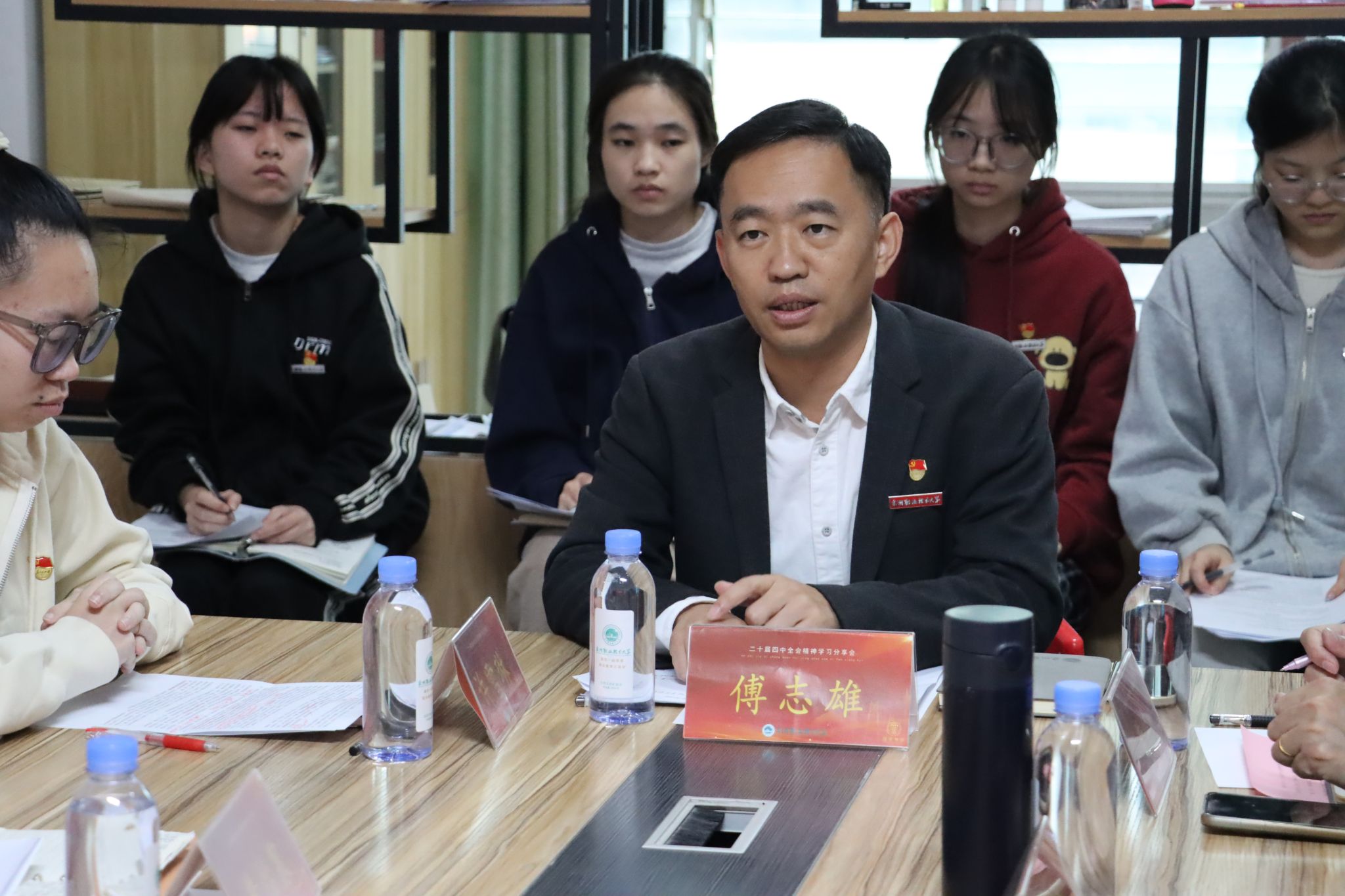 在交流环节,师生代表踊跃发言。教师们表示要将全会精神融入教育教学,引导学生成长成才;同学们结合专业学习与职业规划,表达了将个人发展融入国家建设的决心。