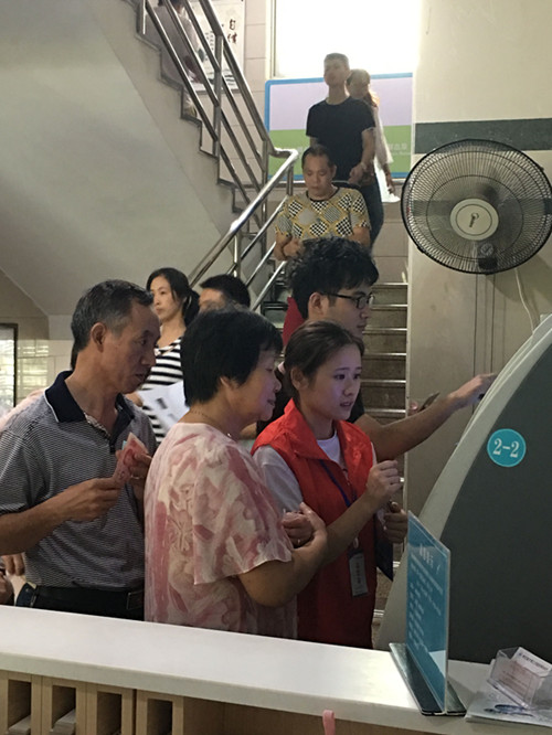 第一批同学先来到晋江市医院接受培训,由晋江市医院姚燕萍女士为同学们介绍他们的服务岗位,门诊各科室的分布以及自助缴费机,自助挂号机的使用。第一个星期同学们所在的岗位被称为“导医导诊”,先做一些简单的引导,例如门诊挂号、检查、收费、取药等各项事务的简单咨询。同学们都很认真听讲,做好笔记,确保能能更好参与志愿服务。培训结束后正式上岗,同学们带着饱满的热情立即投入服务当中。