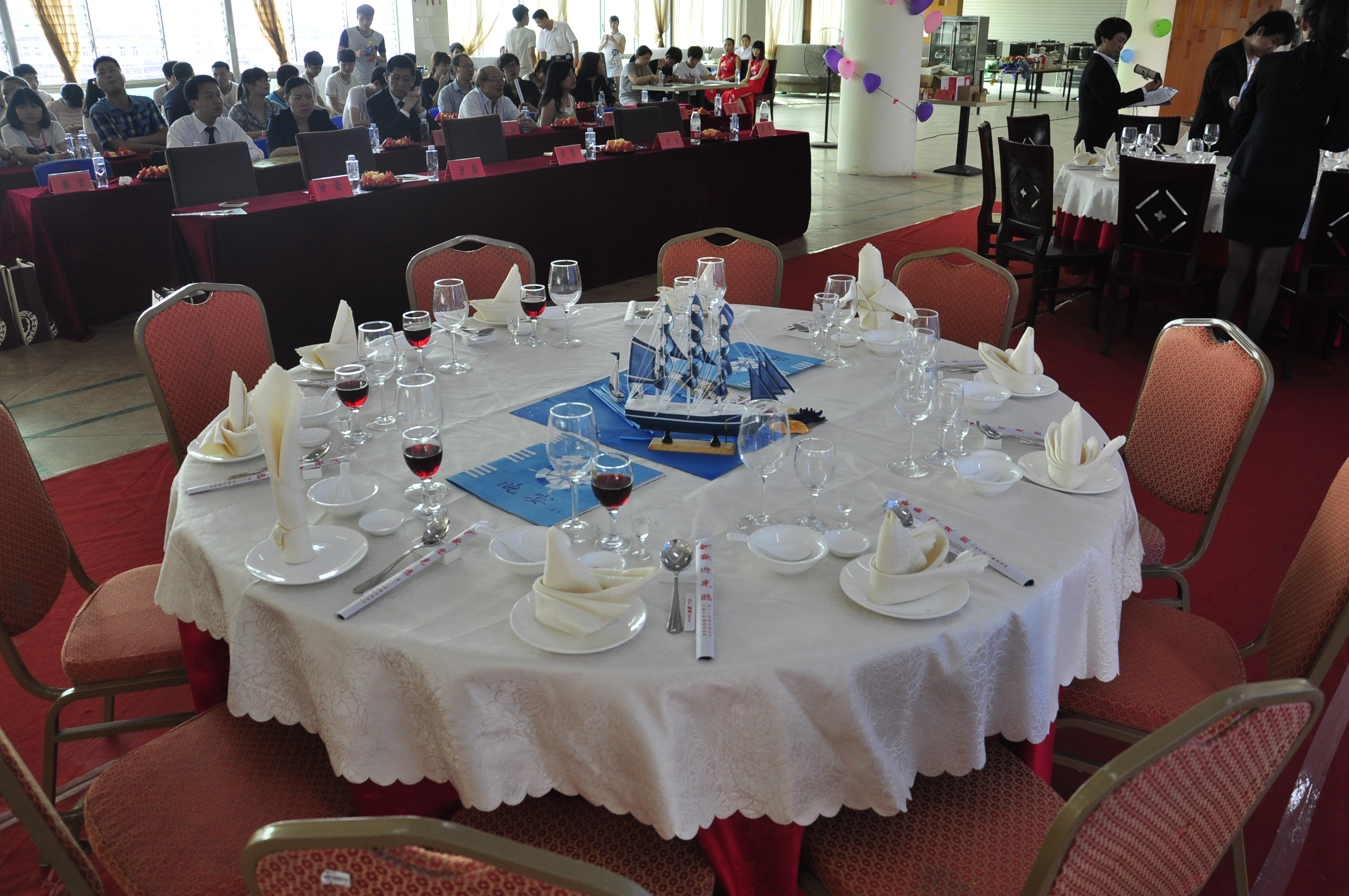 下午2时,由泉州理工学院商学院团总支主办、泉州理工旅游协会协办、石狮爱乐皇冠假日酒店冠名的2015年泉州理工学院“爱乐杯”中餐摆台大赛决赛在食堂三楼隆重举行。本次大赛评委有:石狮爱乐皇冠假日酒店餐饮总监徐鲜琴、中餐部营销经理翁冰雯,晋江宝龙酒店中餐厅经理蔡兴文、西餐厅经理吴佳丽,泉州理工商学院管理系主任叶城锋;出席本次大赛的嘉宾有:石狮爱乐皇冠假日酒店副总经理薛京生先生,房务副总监徐静、西餐部经理龚小锋,晋江百翔世纪酒店人事部经理庄培洪、陈恩莉等。