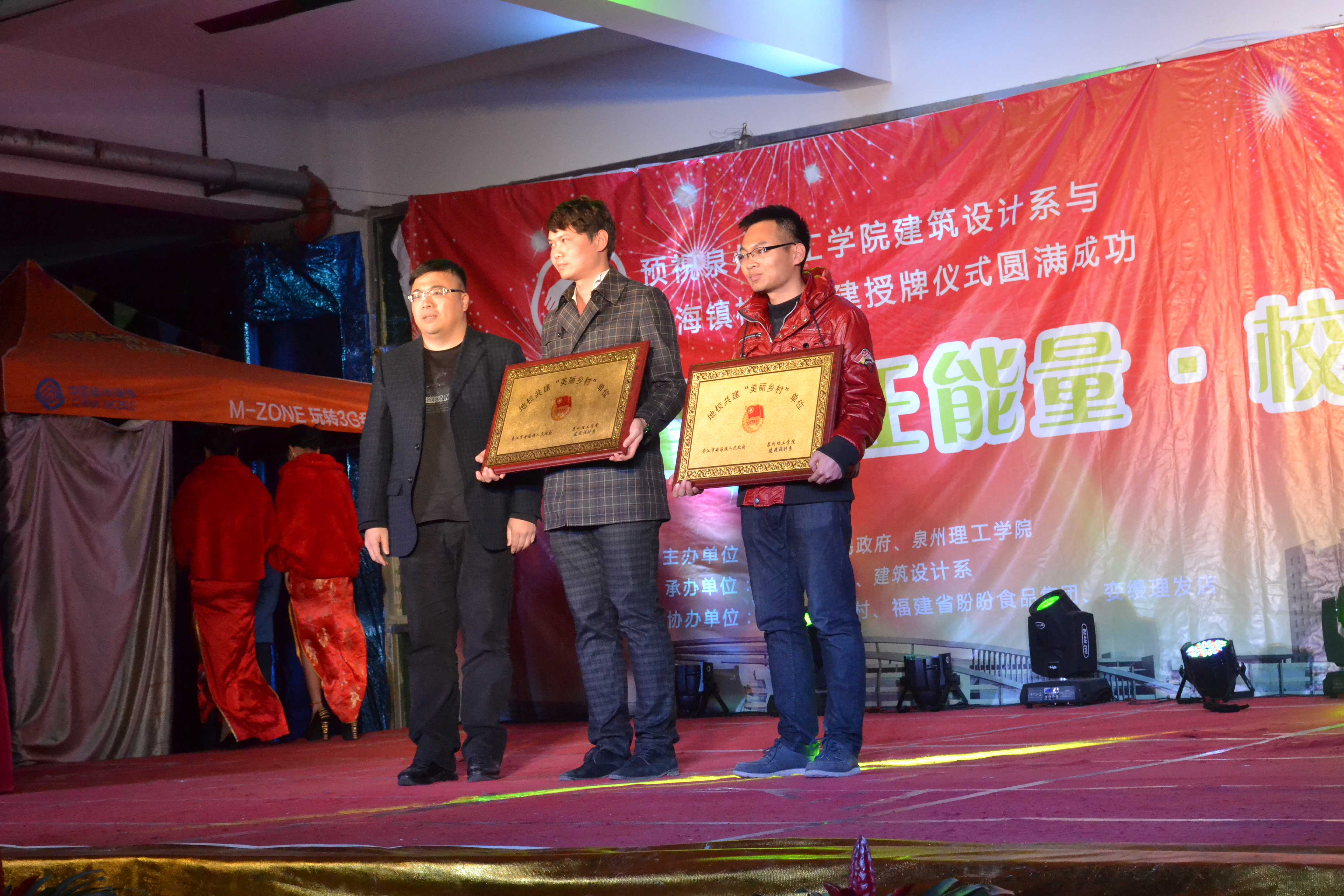 20131225晚上7时许,由安海镇政府、泉州理工职业学院主办,安海镇团委、学校建筑设计系承办的“青春正能量,校地心相连”为主题的共建授牌仪式暨文艺晚会在我校综合餐厅三楼隆重举行。
