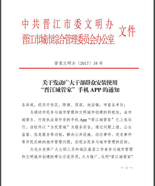 为充分发挥我校师生参与城市管理和文明城市创建的带头示范作用,大力推广、运用晋江城管家手机APP经决定发动广大师生广泛安装、积极使用。